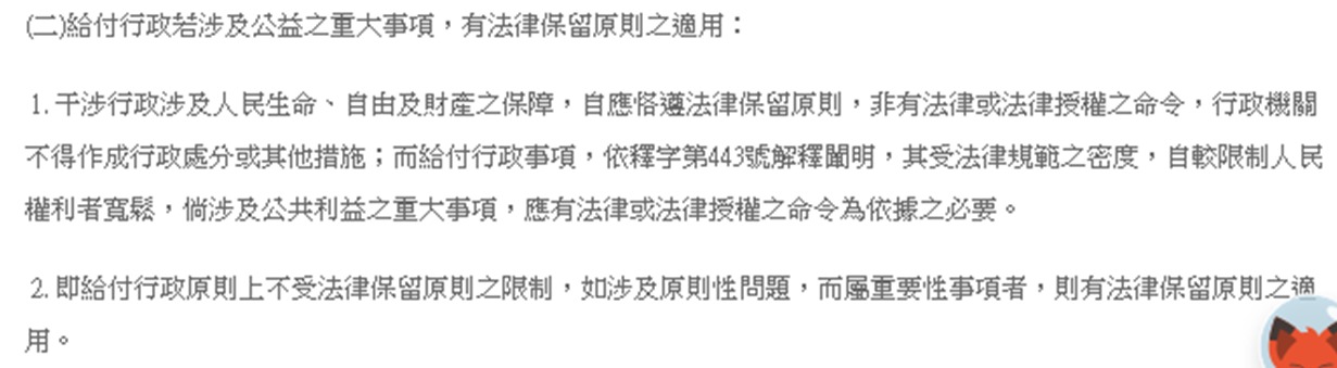 雖然「給付行政」(如發放津貼、補助)對人民是有利的,但根據法律保留原則,涉及重大公共利益或重要給付事項時,行政機關仍必須有「法律」的授權或依據,不能僅憑社會福利原則就無限制地自行擴張職權。