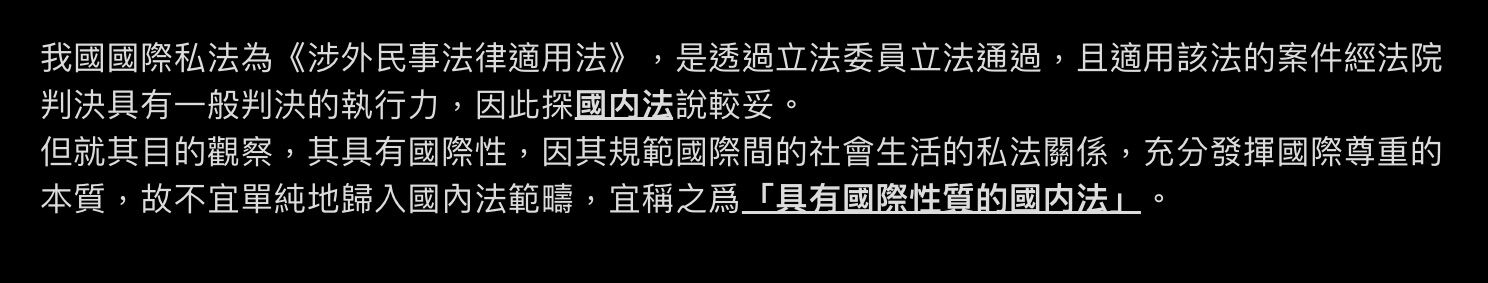 必定是國內法,但公法的部分就...有多數見解跟少數見解了T^T