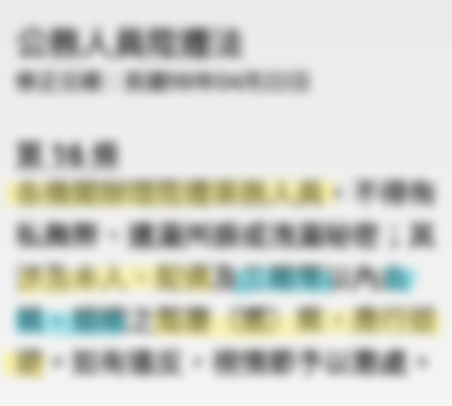 公務人員任用法第26條第1項:各機關長官對於配偶及三親等以內血親、姻親,不得在本機關任用,或任用為直接隸屬機關之長官。對於本機關各級主管長官之配偶及三親等以內