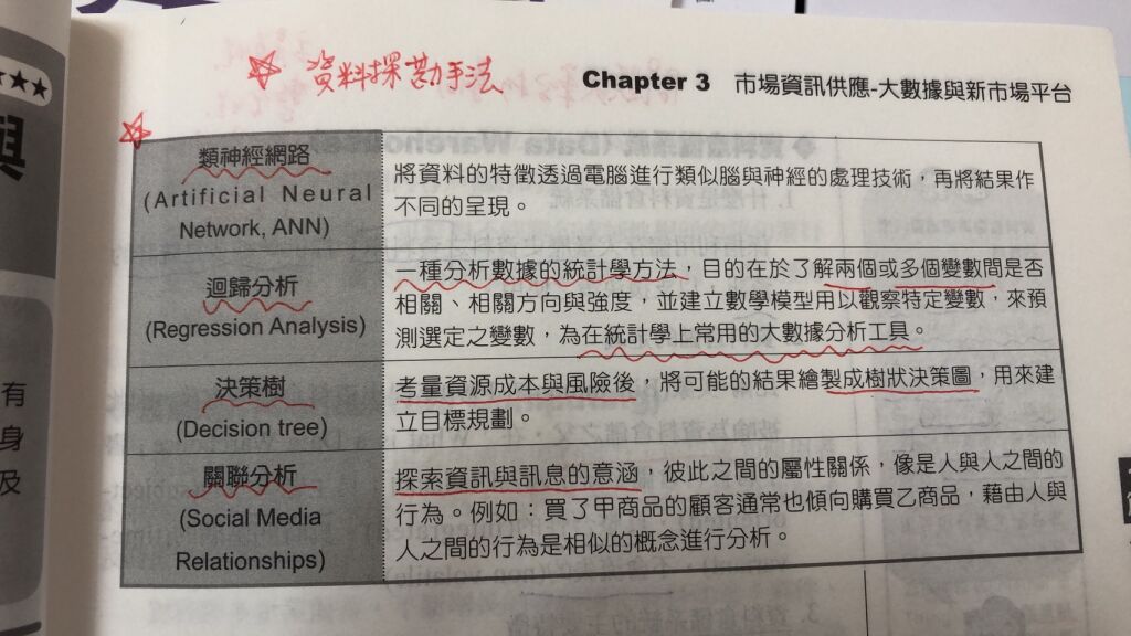 (B)類神經網路(Neural Network):將資料的特徵透過電腦進行類似腦與神經的處理技術,再將結果作不同的
