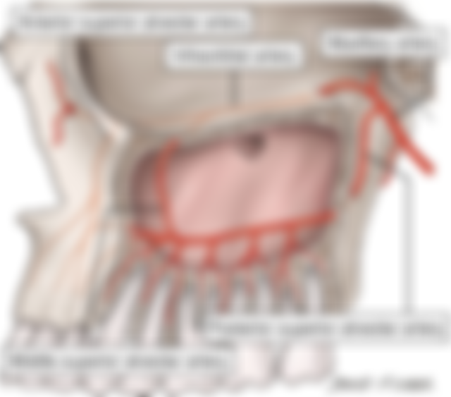- 前上齒槽動脈(在眶下動脈穿出眶下孔前分出)