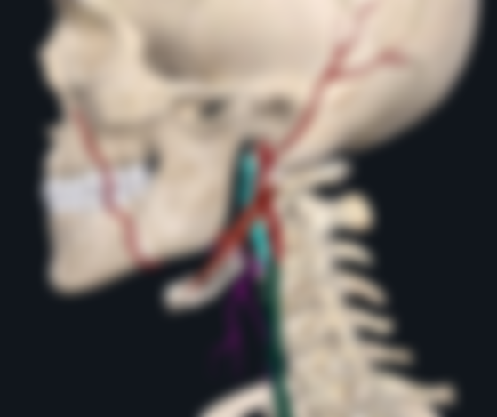(C)外頸動脈約略在同二腹肌後腹(posterior belly of digastric muscle)近似高度稍下方處向前分出顏面動脈 (facial artery)