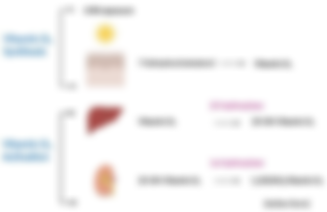 皮膚:合成 Vit D3(未活化) 肝臟...