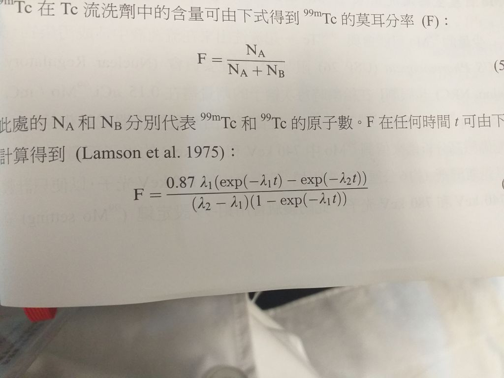 66.7小時,99mTc之半衰期為6小時,且每次淘洗均可將99mTc完全洗出,洗出溶液中,99mTc的莫耳分率為 何?