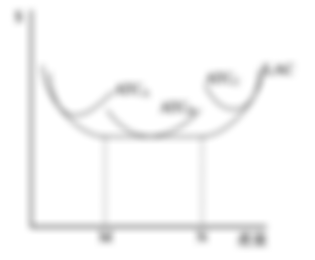 17 下圖為一家生產汽車廠商的平均總成本函數,那條曲線最符合最小規模的短期平均總成本特徵?