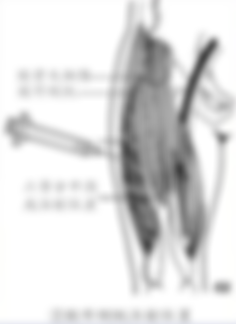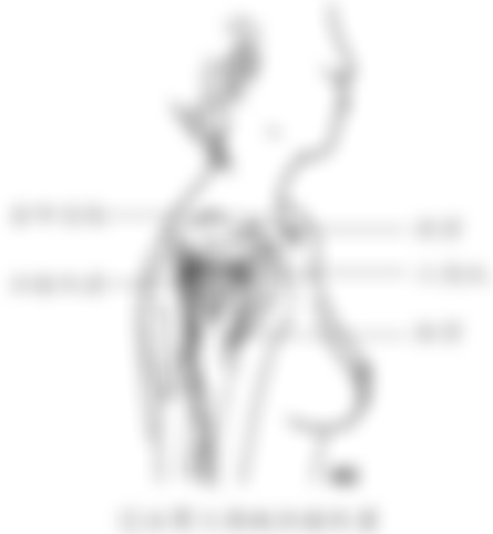 17 執行背臀肌肌肉注射時,以四分法選擇注射部位,最上方的假想線會通過下列那一處?