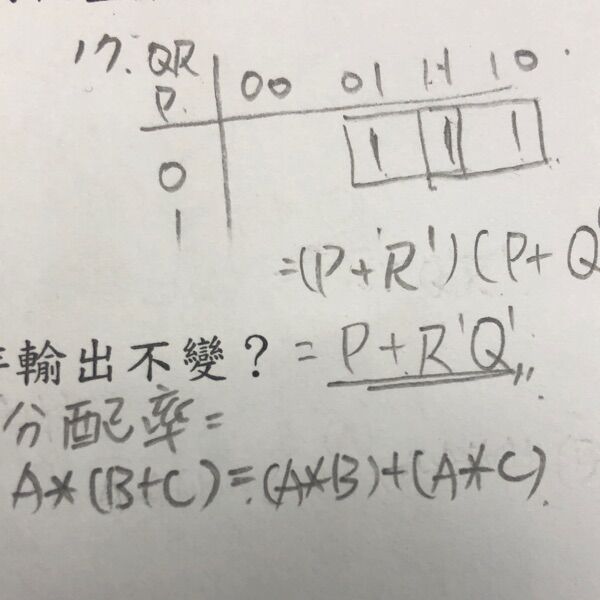 17 簡化布林代數式(P+Q'+R')•(P+Q'+R) •(P+Q+R')的結果是: