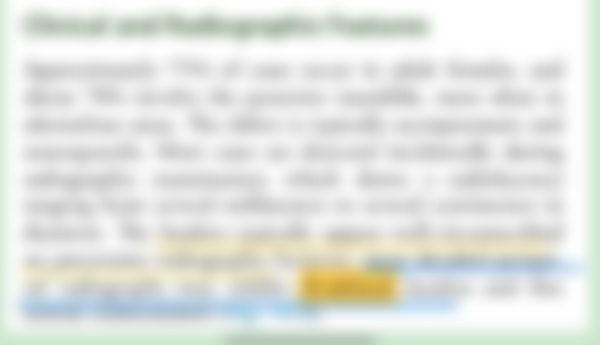 17.下顎骨 X 光影像中,於拔牙區出現一個周圍界限清楚的放射線透過區(circumscribed radiolucency),該區中有