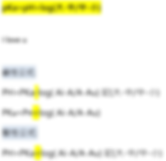 酸: pH= pKa + log([A-] 分子/[HA] 分母)