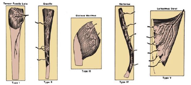 (D)股薄肌(gracilis)是屬於type IV,所以只能取一小部分肌肉來重建缺損