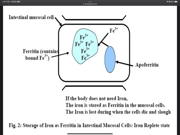 1. 吸收:受總鐵儲存量跟紅血球生成速率調控