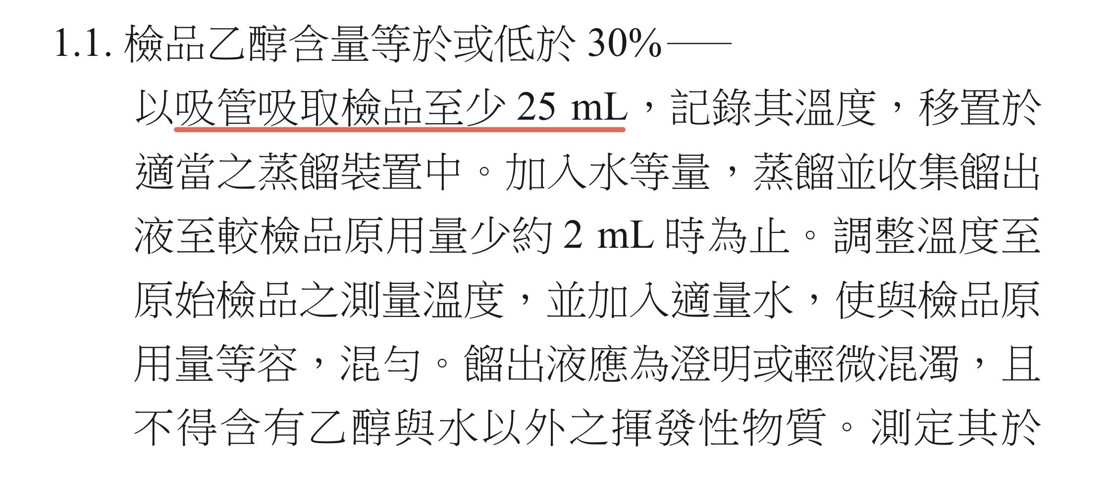 比重法乙醇含量<30% 是要量取至少25ml檢品