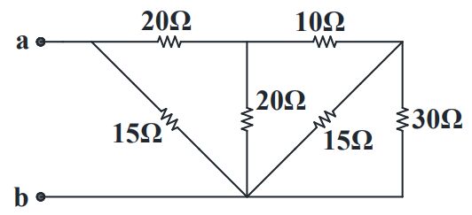 17. 如右圖所示之電路圖,試求 Rab 值為何?(A) 8 Ω (B) 9 Ω(C) 10 Ω (D) 12 Ω