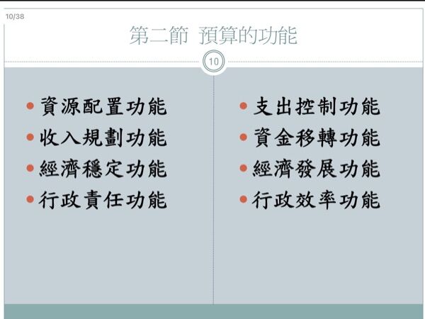 認為政府財政的收入與支出應提四種功能: