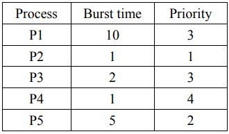 17. Consider five processes as follows. They arrived in the order of P1, P2, P3, P4, and P5 at time 0. What is the total turnaround time of all processes by using the shortest-job-first (SJF) scheduling algorithm?