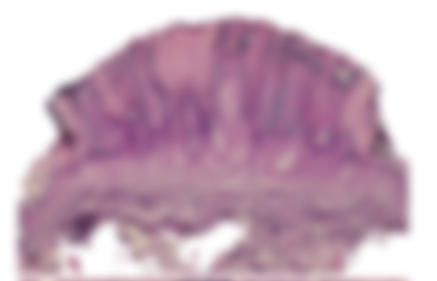 18.一位50歲男性病患,有20年嚼食檳榔、抽菸及喝酒的不良習慣,主訴頰黏膜有一白色的菜花狀突 起,病患接受切片檢查。根據顯微鏡的發現(如下圖),最可能的病理診斷為何?