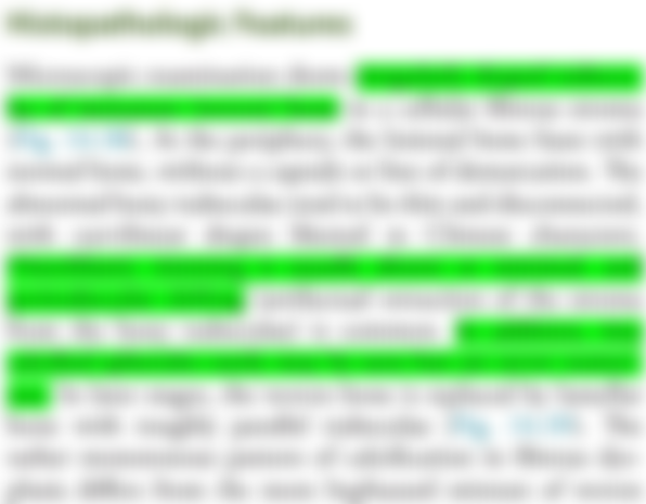 (A)骨小樑整齊、通常沒有造骨細胞、存在大量鈣化小體