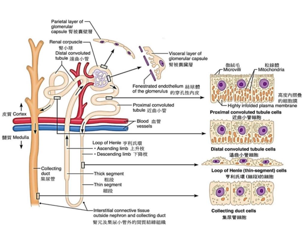 而利尿劑作用的腎小管則只有上皮細胞,各種上皮細胞的樣子在下面那張圖讓各位參考一下