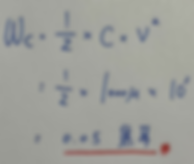 18.有一電容量為 1000 μF 的電容器,若將其接上 DC10V 電壓後,請問該電容器所儲存的能量為多少?