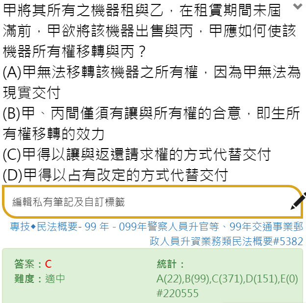 18.甲將其所有之鑽戒出賣給乙後,如仍有利用該鑽戒之需求時,甲得以下列何種最簡便的