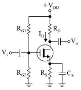 18. 如下圖所示電路,VDD=10V、RG1=90KΩ、RG2=10KΩ、RS1=1KΩ、IDSS=12mA、 VGS(OFF)=-4V,求 ID=?
