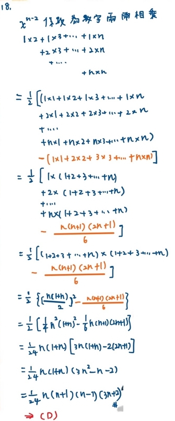 18. 若n為正整數, (x+1)(x+2)... (x+n) 為一個n次多項式,請問這個多項式中