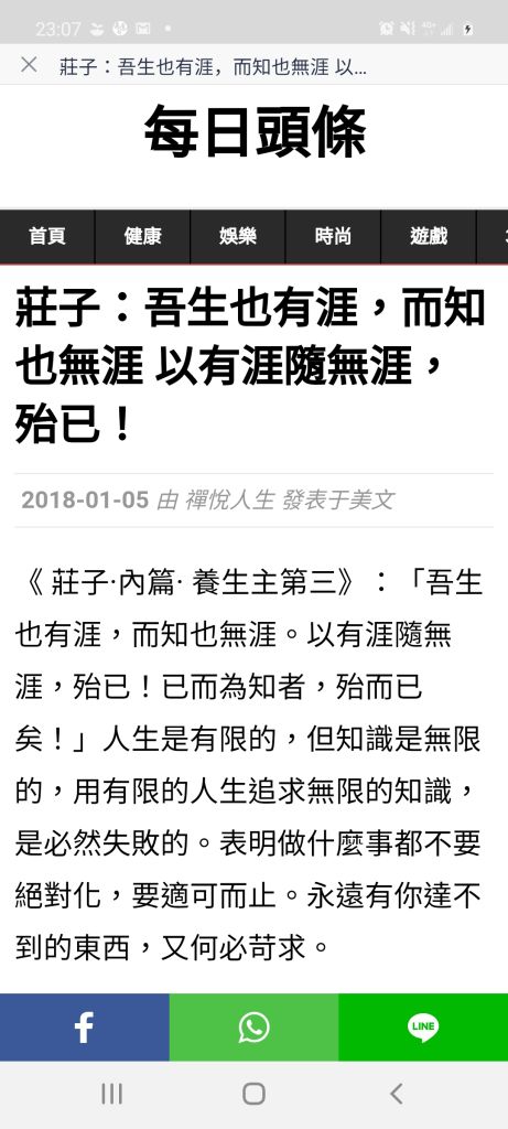 翻譯:我們的生命是有限的,但是知識是無窮盡的,以有限的生命,去追求無限的知識,真的是會把自己身心都累壞了。