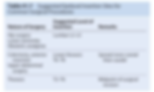 (A) epidural 導管尖端應放置在 T11~T8 最佳