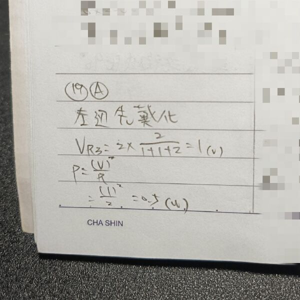19 如圖所示電路中,已知 R1 = R2= 1 Ω,R3= 2 Ω,試問電阻 R3 上消耗的功率為多少瓦特?