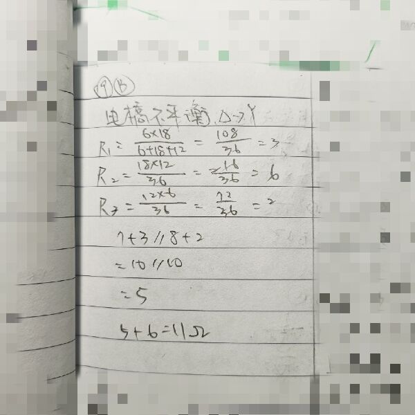 右邊Δ→Y,分母18+12+6=36,分子分別為18*12、18*6、12*6