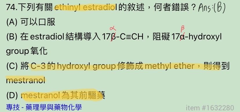 106-2的題目Mestranol為ethinyl estradiol的prodrug,兩者皆可.口服避孕藥