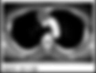19. 40歲男性病人陳述因容易疲倦及無力、在休息或睡覺後會改善,正在就醫中,其胸部電腦斷層掃描如圖所示,此胸腔變化最可能為何? (A) 肺癌 (B) 胸腺瘤 (C) 淋巴瘤 (D) 主動脈瘤 (E) 甲狀腺腫 .