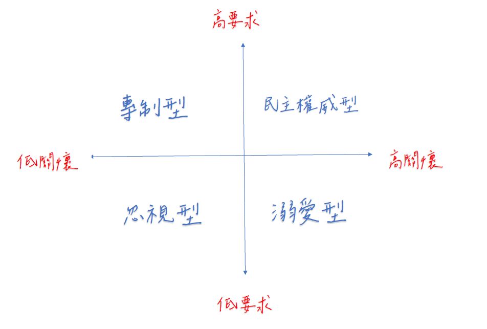 19.家長教養子女的方式有許多種不同類型,以關懷與要求兩個向度來分析,家長對子女採取低關懷、高要求,屬於哪一種類型的教養方式?