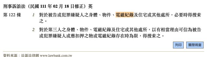 (B)得搜索之物不包含電磁紀錄