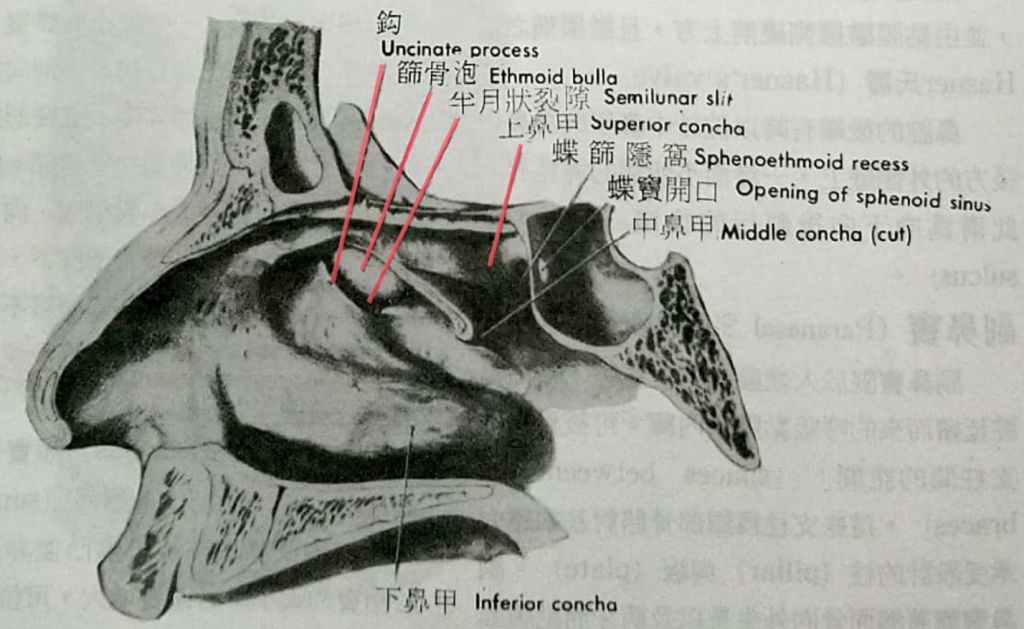 (D)上鼻甲(superior nasal concha)