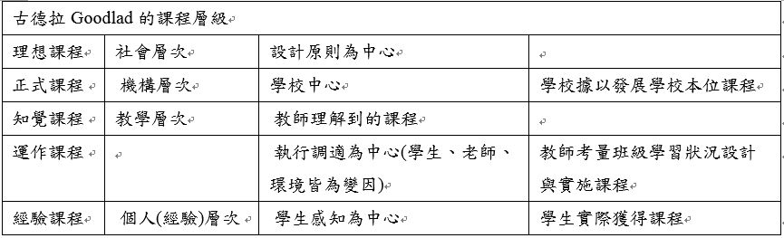 知覺課程 教學層次 教師理解到的課程