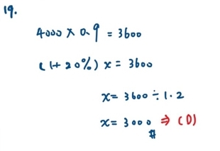 19. 有一商品其定價為4000元,依據定價打九折出售後,尚有20%的利潤,請問此商品之成本為何?