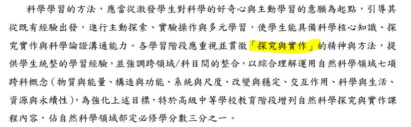 出自:十二年國民基本教育課程綱要國民中小學暨普通型高級中等學校─自然科學領域