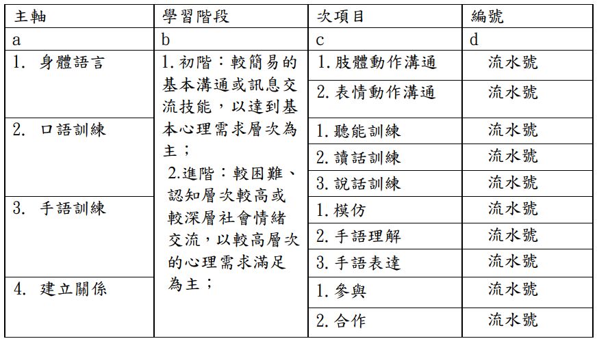 1.訊息理解:運用感官或輔具理解他人之口語、非口語及圖文符號等不同形式的