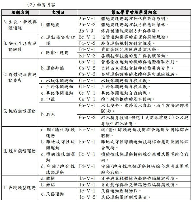 19. 12 年一貫基本教育健康與體育領域課程綱要中,關於學習內容指標「Cb-Ⅴ-2 奧林