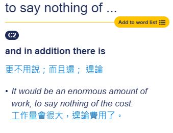 (A) say nothing of it 更不用說