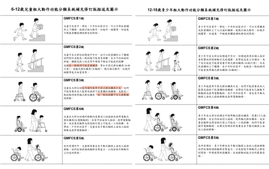 參考:https://canchild.ca/system/tenon/assets/attachments/000/000/082/original/GMFCS-ER_Translation-Traditional-Chinese.pdf