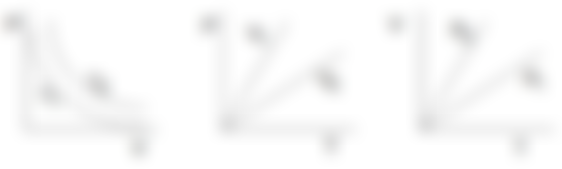 2、某定量之理想氣體,其 P、V、T 三者之關係如下,下列各項比較何者正確?