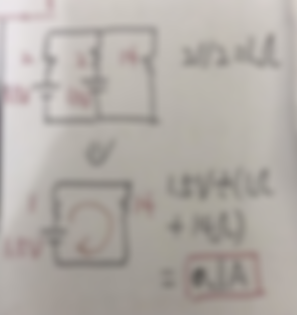 2 兩個相同規格之電池,電動勢均為 1.5V,內電阻為 2Ω,並聯後接一 14Ω 之電阻,則通過電阻之電 流為何?