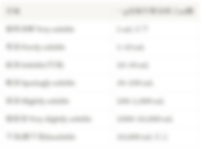 | Freely Soluble (易溶) | 1 to 10 |