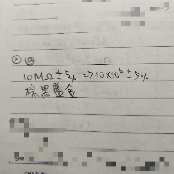 2 試找出 10 MΩ 且具有 5%誤差之電阻色碼?