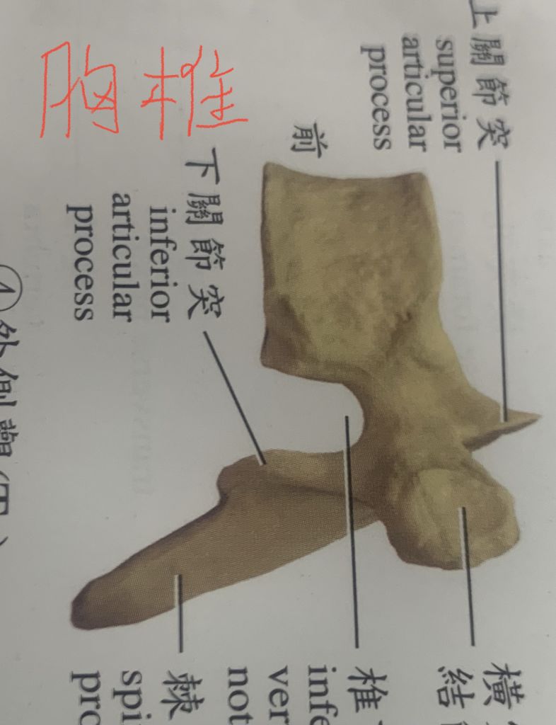 胸椎棘突:長且朝下
