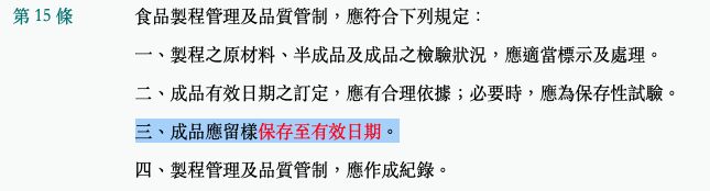 2 依據食品良好衛生規範準則之規定,食品工廠進行食品製程管理與品質管制之規範中,成品應留