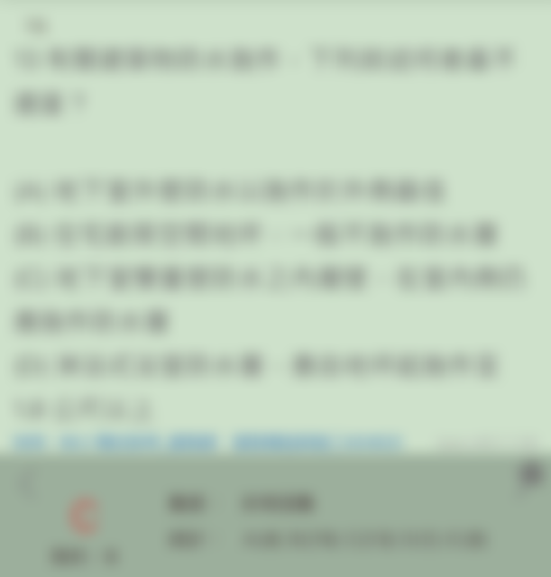 (B)浴室地坪牆面防水工程完成後,為確認品質,應做 24 小時以上的積水測試,俗稱試水