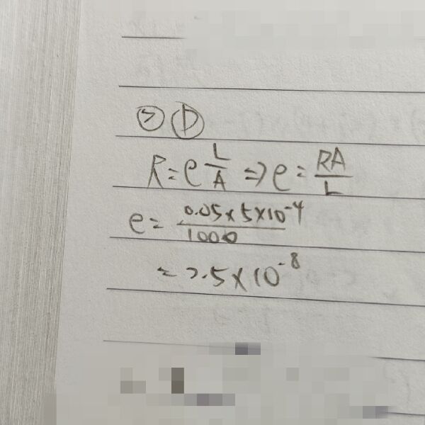 2 某導體長度為1000 m、截面積為5 cm2 、且電導值為20姆歐,則其電阻係數為多少 Ω.m?